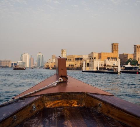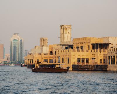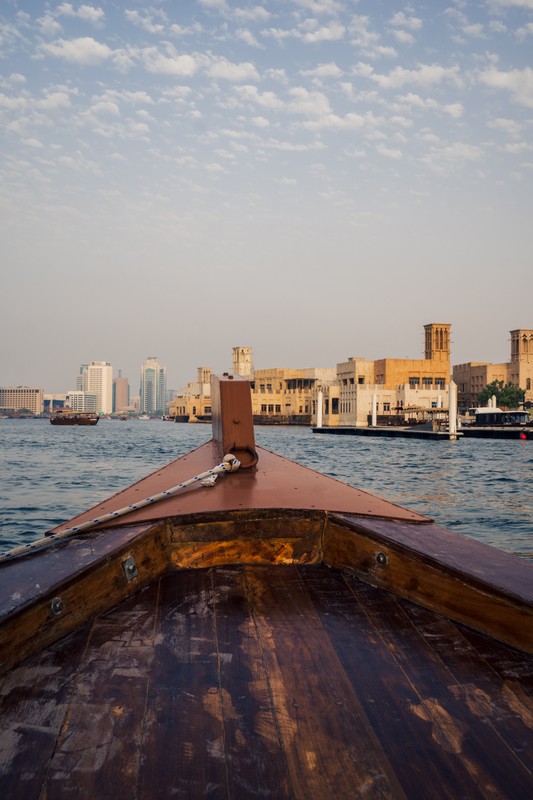 К тому моменту, когда закат добавит красок небу, мы окажемся на пешеходной набережной и устроим небольшую фотосессию. А затем — пройдем на арабскую лодку Дони, которая переправит нас через пролив в исторический район Бастакия.